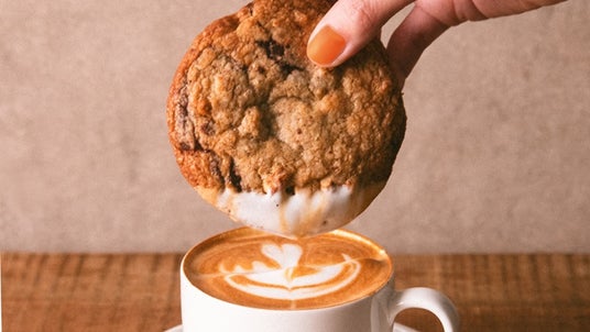 あえて成形せずに焼き上げた表情の異なる手のひらサイズのクッキーには、チョコとナッツがぎっしり。外側は軽い歯ごたえで、中はもっちり。一度食べたらやみつきに。大きなクッキーを頬張るしあわせと、焼きたての味わいは格別です。