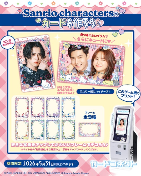 株式会社コナミアーケードゲームスは、アミューズメント施設向けカードプリントゲーム機『カードコネクト』にて、株式会社サンリオのキャラクターたちとコラボレーションしたデザインイベントを5月31日(日)まで開催していることをお知らせします。