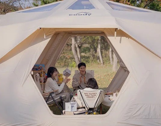 coodyのエアテントは、ポンプで空気を入れるだけの簡単設営。初心者や女性でも安心して使え、広々とした快適空間で家族や友人とゆったり過ごせます。設営や撤収の手間を減らし、大切な人との時間を存分に楽しめるのも魅力。さらに、耐風・防水性に優れた高品質な素材を採用しているため、どんな天候でも快適に過ごせます。上質なグランピングスタイルを気軽に体験し、特別な思い出を。