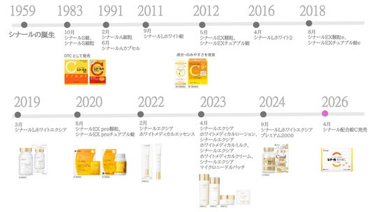 ●医療用と同成分・同量配合*アスコルビン酸(ビタミンC)とパントテン酸カルシウムを安定配合することに成功し、1959年に医療用医薬品として誕生したシナール。改良を加えた一般用医薬品のシナールも含め、現在でも多くの方に服用されています。