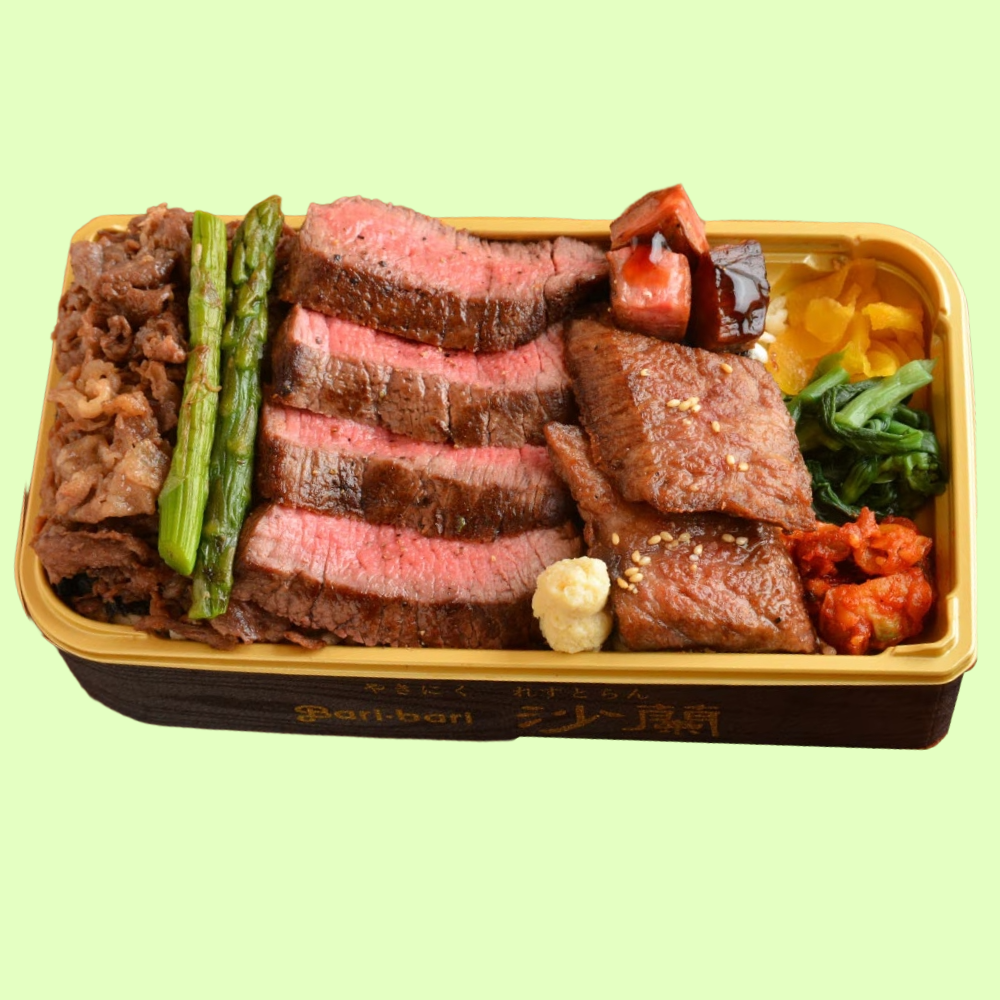 やきにくれすとらん沙蘭 はこだて大沼黒牛ステーキ・すき焼き・カルビの盛合せ弁当(1折)2,430円〈各日50折限り〉