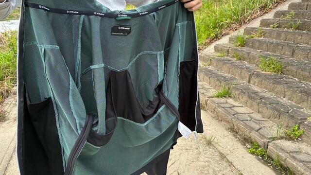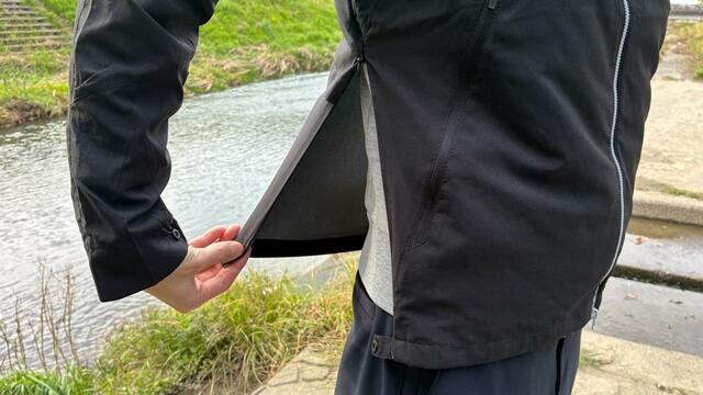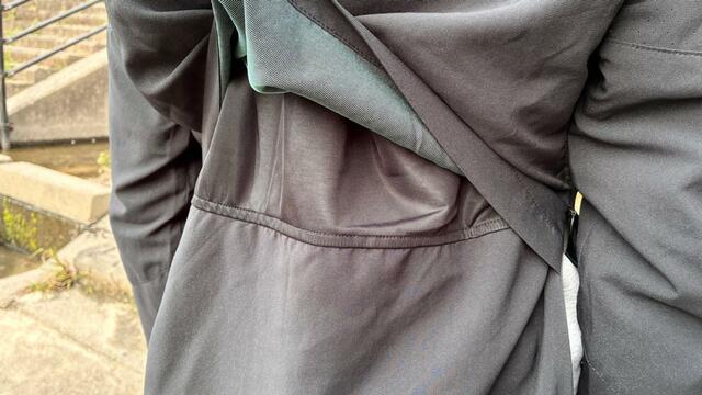 さらに、脇腹のファスナーを開ければがばっと空気を取り込むことも可能。端がバタつかないようにスナップボタンもついています。