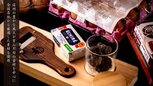料理には、信州の豊かな風土が育んだ旬の食材を中心に、全国各地から厳選した素材を使用。山々に囲まれた土地ならではの清らかな水と豊かな自然環境が育む食材の魅力を最大限に引き出し、素材本来の味わいを丁寧に表現します。