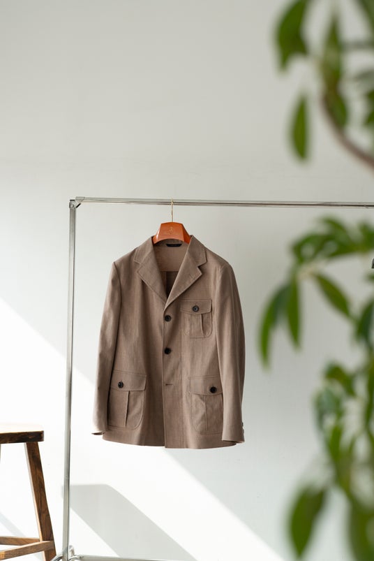 ストレッチリネンを採用したモダンサファリニューヨークにあるテーラリングファクトリーFerrara Manufacturing社が生産を手がけた米国製サファリジャケット。リネンに高機能素材として知られるソロテックス(R)︎をブレンドし、ストレッチ性とシワになりにくい形態安定性を実現。ヘリテージスタイルを踏襲しつつ現代的な快適さを叶えました。