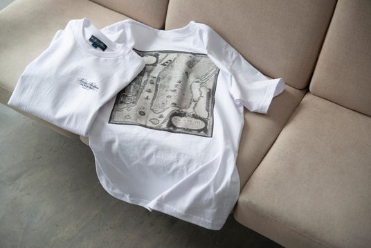フロントにはブルックス ブラザーズのクラシックなロゴ、背中にはアーカイブ資料に掲載されている図案をプリントしました。ちなみに地図のなかに記されているのは、ブルックス ブラザーズのショップが湾岸から内陸へと変遷していった足跡。