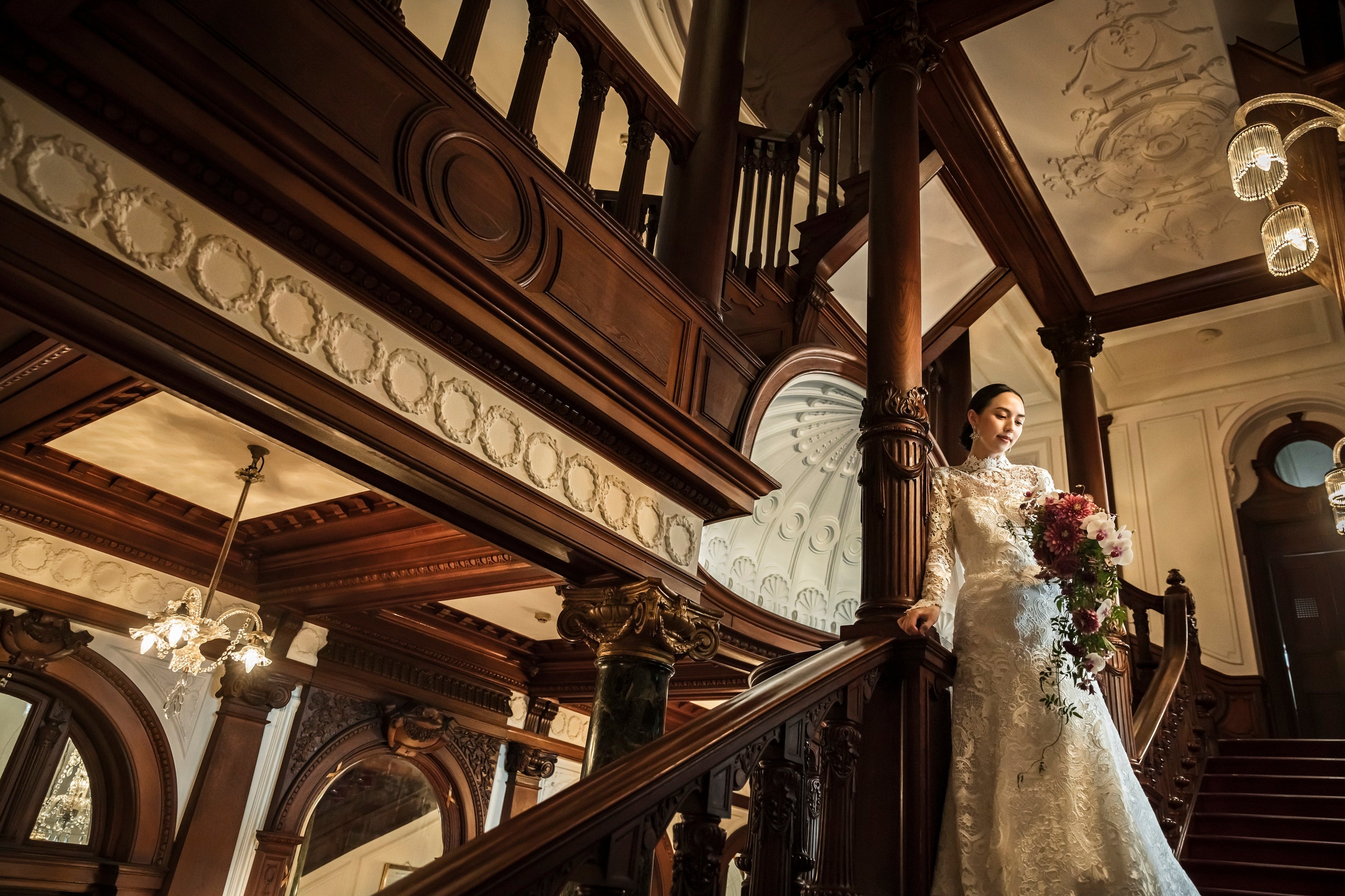 ホテル長楽館の本館「長楽館」は、明治時代に迎賓館として建てられた洋館で、現在は国の重要文化財に指定されています。本プランでは、館内に滞在しながら文化財空間での撮影を行うことで、単なる撮影にとどまらない、滞在そのものが思い出となるフォトウエディング体験を提供します。