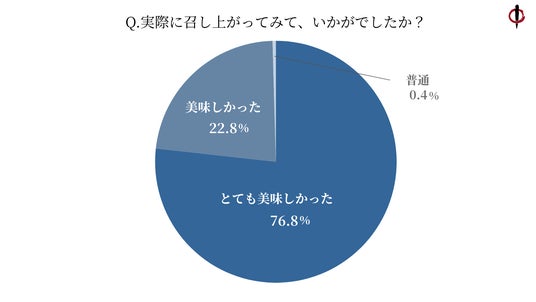 さらに実際に食べた感想については、99%が「美味しかった」と回答。そのうち50%以上が「期待以上」と評価しており、味わいに対する満足度の高さがうかがえる結果となりました。