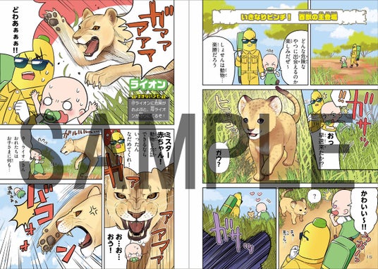 本書では、すまない先生たちの世界に迷い込んだ危険生物たちを捕獲するミッションに、すまないスクールのメンバーたちが挑みます。ライオン、トラといった陸上の屈強な危険生物から、キングコブラ、オオヒキガエルといった毒をもつ生物、さらにサメ、デンキウナギなどの海水・淡水の生物まで、100体以上のさまざまな危険生物が登場します。