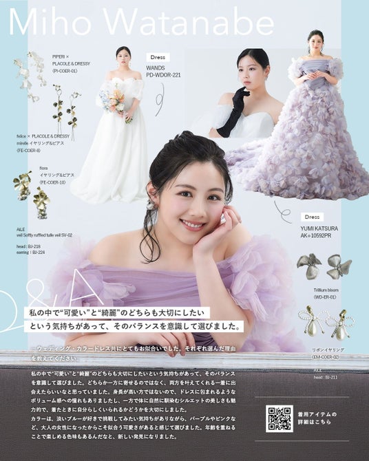 「PLACOLE & DRESSY」ブランドを展開する、冒険社プラコレ(本社:神奈川県鎌倉市、代表取締役CEO:武藤功樹)は、ウェディングドレスをもっと身近に楽しんで欲しいと考え「ウェディングドレスに憧れるすべての人へ」PLACOLE&DRESSYが贈る、特別コンテンツをスタート。2026年4月は俳優として活躍する渡邉美穂さんを迎え、メッセージを頂きました。