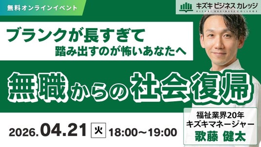 就労移行支援事業所・キズキビジネスカレッジ(KBC)は、2026年4月21日(火)に、無職期間からのリスタートを現実のものにするための無料オンラインセミナーを開催します。