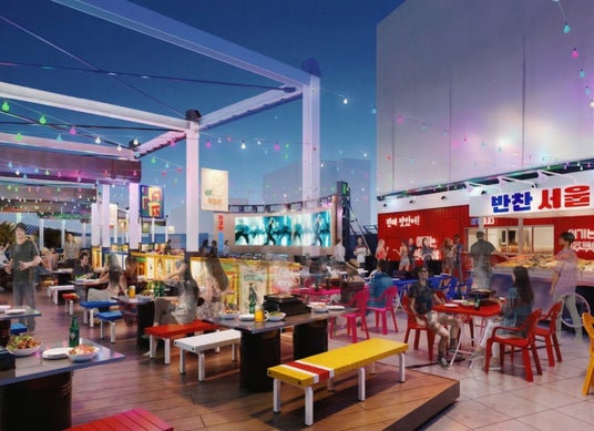 ネオンがきらめく屋上空間で、韓国の屋台文化「ポジャンマチャ」の雰囲気をイメージしたビアガーデンです。会場内には、人気の韓国惣菜が並ぶ「パンチャン&キムチバー」をはじめ、不定期で開催されるアイドルやシンガーによるライブステージ、さらに本場韓国の最新トレンドを体感できるブースなど、食とエンターテインメントが融合した多彩なコンテンツを展開予定です。