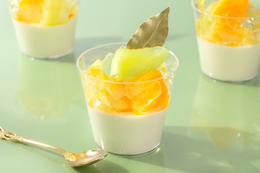 クローブがほのかに香るレモンゼリーを重ねることで、メロンの甘みにすっきりとした香り