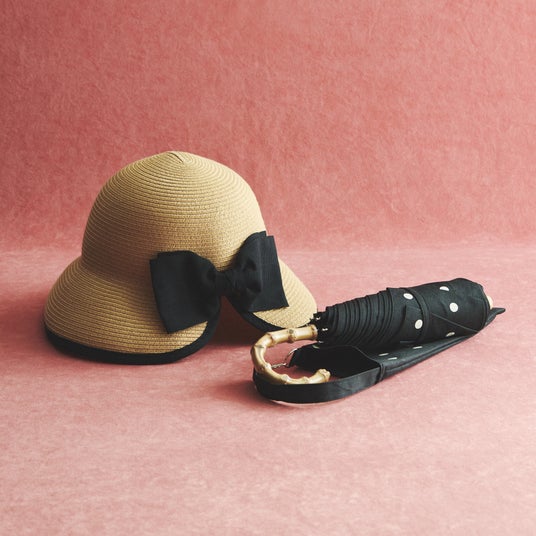 バックリボンハット ¥4,290、晴雨兼用折りたたみ傘 ¥4,620