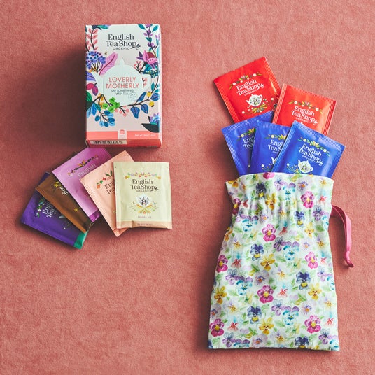 紅茶5種セット ¥1,080、LIBERTYプリント巾着入り紅茶セット ¥1,620