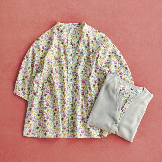 リバティプリントブラウス ¥13,970 、リバティプリントカーディガン ¥7,480