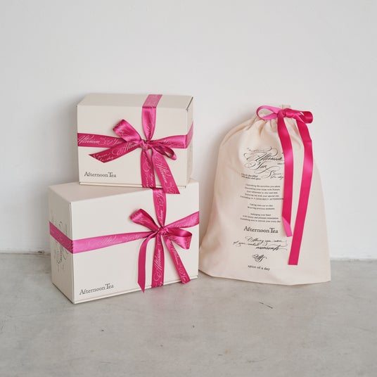4月8日(水)より、有料ギフトラッピングに限定のピンクが登場。ギフトボックスとコットン巾着(Mサイズ)のリボンカラーとしてお選びいただけます。