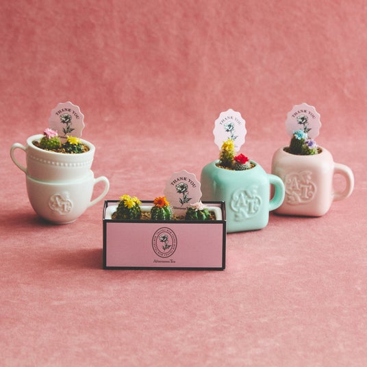 ティーカップサボテン ¥2,200、ミニマグサボテン 各¥1,430、花咲サボテンmini ¥1,980 ※公式オンラインストアでの取り扱いなし