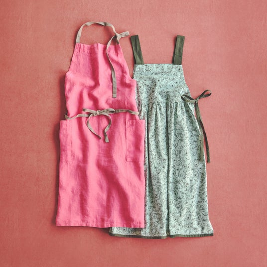リネンエプロン ¥6,600、ポピーサイドリボンエプロン ¥4,950