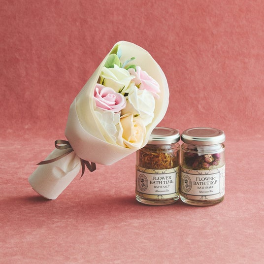 フラワーブーケ ¥3,300、 ハーバルバスソルト 各¥1,760