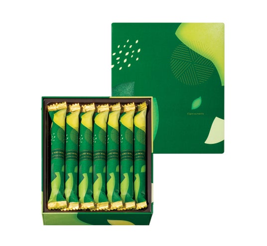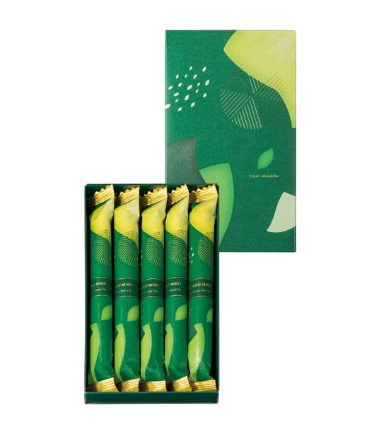 くるっと巻いた抹茶生地のシガールに抹茶のチョコレートを詰めました。宇治抹茶の甘みと旨みがバターの豊かな風味と融合し、それぞれが引き立つ絶妙な配合バランスに仕立てました。※香料不使用