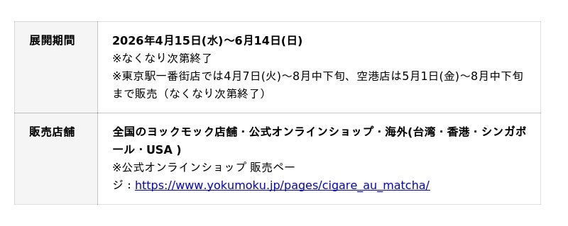 公式オンラインショップ:https://www.yokumoku.jp/pages/cigare_au_matcha