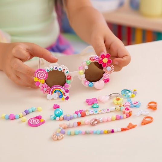ビーズを貼ってサングラスをデコレーションしたり、メガネストラップもつくることができるDIYキッズサングラス。つくるのは旅行前でも旅先でも◎