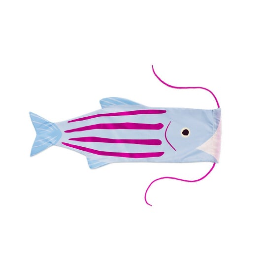ユーモアたっぷりの魚のかたちが愛らしいランドリーバッグ。洗濯物はすべて口の中に詰め込めます。