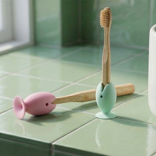 ひと目で見分けやすい魚型の歯ブラシホルダー。カバーにもホルダーにもなり、置き場所に困りがちな歯ブラシもすっきり収納できます。4個セットで家族それぞれの歯ブラシも迷わず使えます。