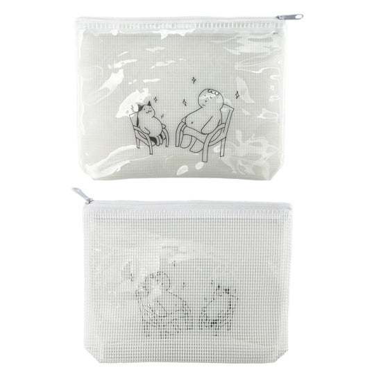 背面がメッシュ素材のポーチは自立する形で高さもあり、サウナグッズを持ち運ぶのにとても便利です。