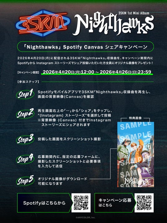 さらに、いち早くアルバム楽曲を試聴することが出来る「3SKM ‘Nighthawks’ Highlight Medley」が、2026年4月8日(水)12時より、3SKM 公式YouTubeチャンネルで公開されました。