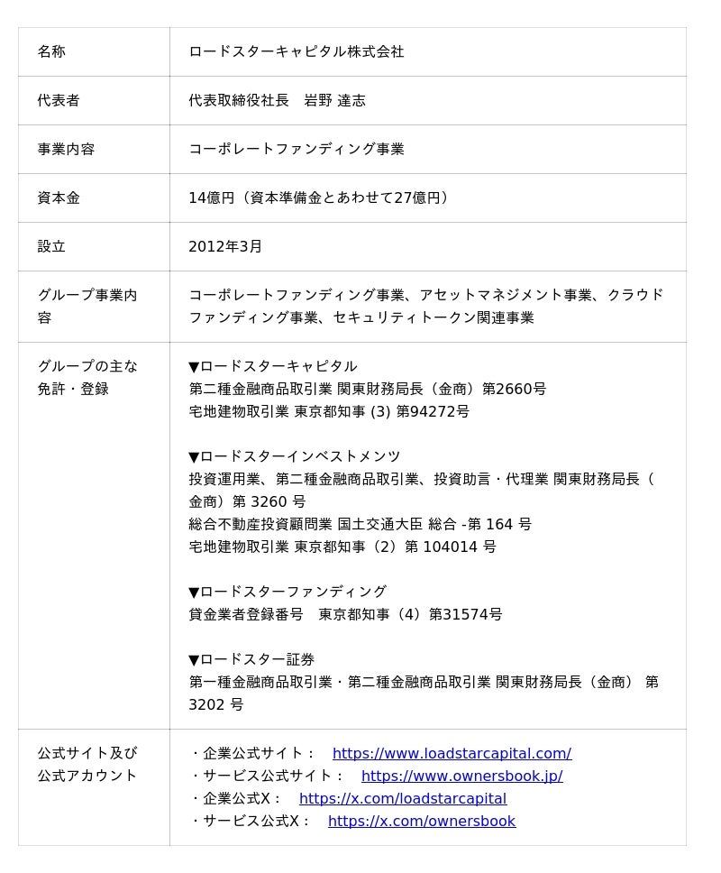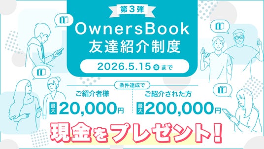 ロードスターキャピタル株式会社(本社:東京都中央区、代表取締役社長:岩野達志、東証プライム市場・3482)は、グループで運営する不動産特化型クラウドファンディング『OwnersBook(オーナーズブック)』において、新規会員登録およびご利用のきっかけづくりを目的とした「第3弾『OwnersBook』友達紹介キャンペーン」を実施いたします。