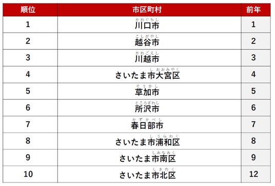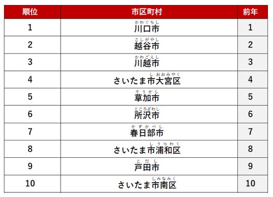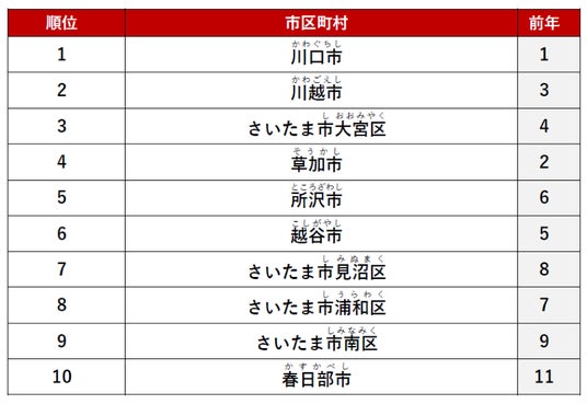 2位には「越谷市」、3位には「川越市」がランクインしました。