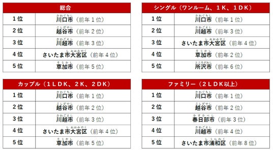 「アットホーム 賃貸・街ランキング 埼玉県編」 調査結果