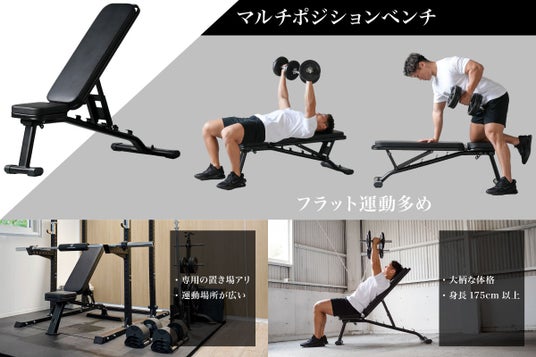 どちらか迷ってしまう場合は、ご自身の体格やトレーニングスペース、トレーニング内容からお選びいただけます。