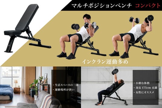 ・マルチポジションベンチコンパクト:背面9段階角度×座面3段階