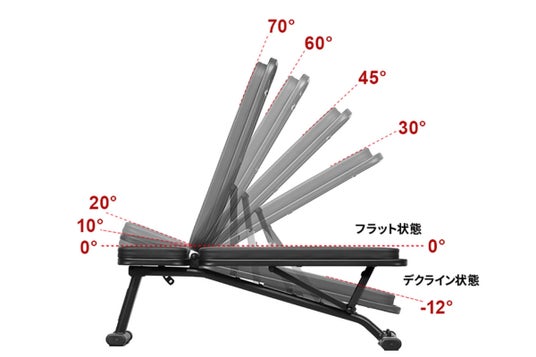・マルチポジションベンチ:背面6段階角度×座面3段階