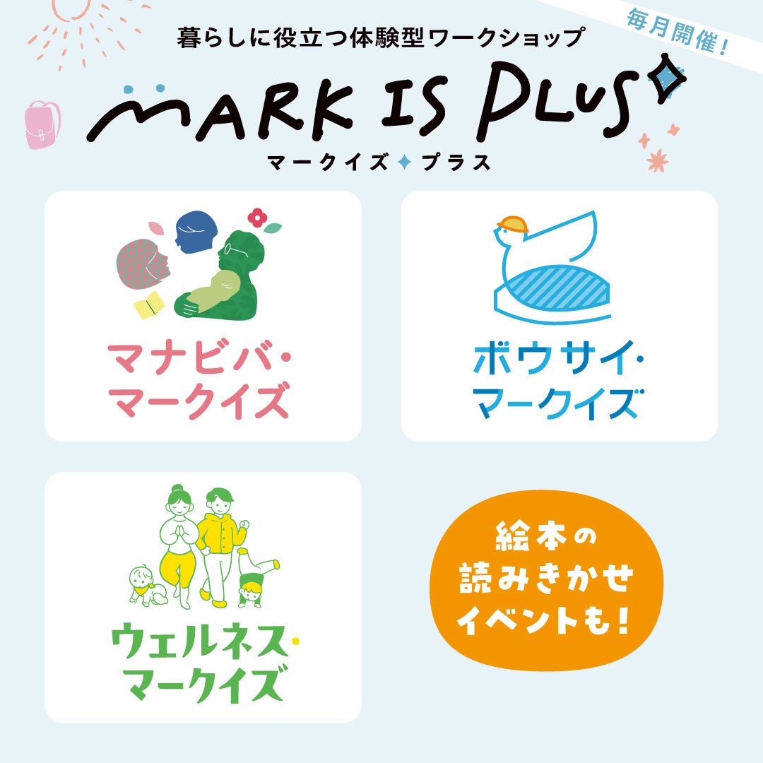 昨年度に開始した地域連携イベント「マナビバ・マークイズ」「ボウサイ・マークイズ」を統合し、「マークイズプラス」としてバージョンアップ。地域のお客様との接点づくりの場として、今年度も毎月開催します。