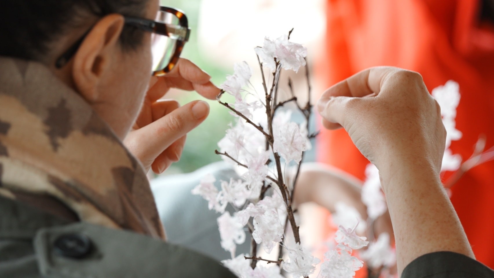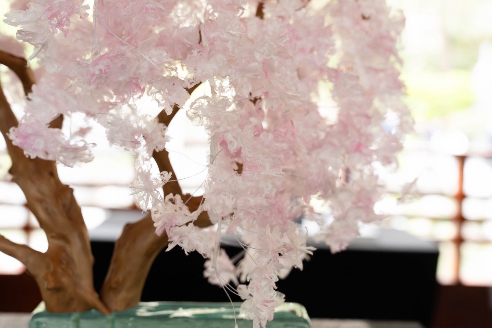 花材にはすべて、福井県産の「和紙(越前和紙)」を使用しました。和紙を単なる素材としてではなく、日本人の美意識や精神性を発信する媒体(メディア)として捉えています。緻密な手仕事によって空間に咲き誇った「縁桜 -えにしざくら-」は、世代を問わず多くの方々が足を止めて撮影や質問をされるなど、和やかながらも熱のこもった反響を呼びました。