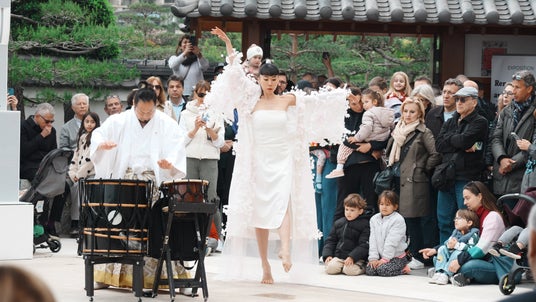また開会式では、空間展示だけでなく、和紙を用いた特製衣装による、小池ミモザ氏(モンテカルロバレエ団)の舞踊パフォーマンスも披露されました。michiko氏が企画し、当社が和紙の花を提供したこの衣装について、三笠宮彬子女王殿下へご説明する機会に恵まれました。殿下からは「桜が散る様子も感じられ、大変美しい衣装ですね」とのお褒めの言葉を賜り、和紙を用いた新しいアプローチが、文化的意義の深い場において確かな共感を呼ぶ結果となりました。
