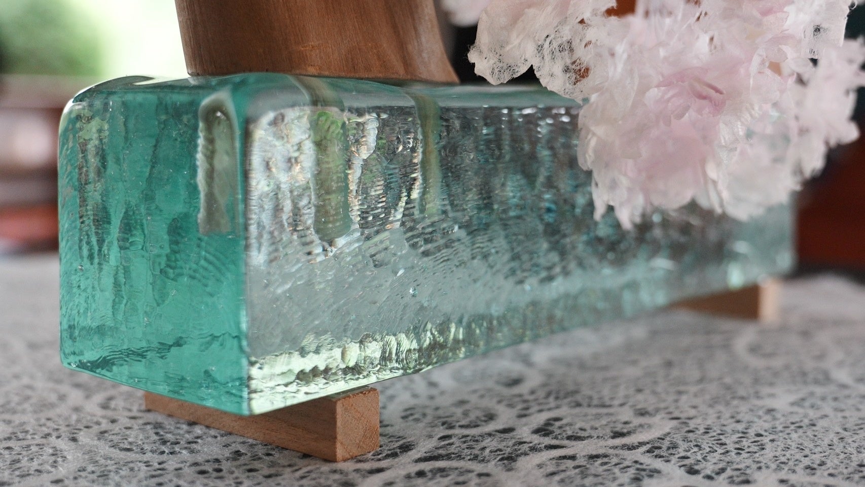 廃棄蛍光灯から生まれ変わった、光を透かして輝く青いガラス