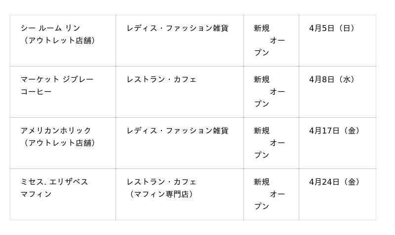 ■4月OPEN店舗