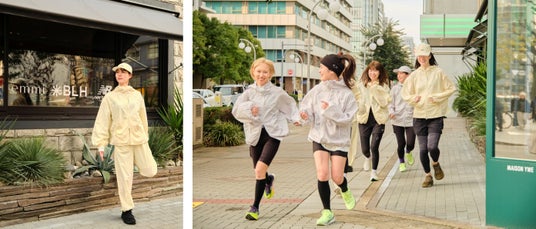 New Balance for emmiの別注ウェアで大会前日はホテル周辺を軽くランニング。パステルカラーを基調としたカラーリングで、春を先取りしたスタイリングに。