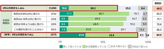 一方で、直近2年間は受診していないものの、過去に受診経験のある層の8割以上が「定期的な受診の必要性」を認識しています(図表 2)。この「定期受診の必要性に対する高い認知」と「実際の行動」のギャップを埋めるためには、個人の意識啓発に留まらず、受診を阻む心理的・物理的なハードルを構造的に改善し、受診停滞期にある層を具体的な受診行動へと促すことが必要と考えられます。
