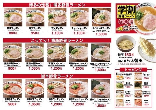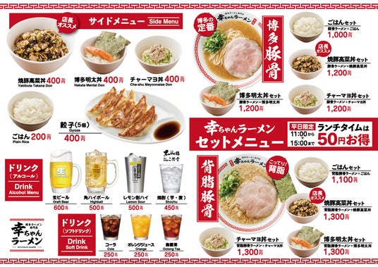博多ラーメン専門店 幸ちゃんラーメン(こうちゃん)は、本場博多はもとより国内外10カ国で愛されている元祖泡系豚⾻ラーメン『博多一幸舎』がプロデュースする、豚⾻ラーメンブランドです。2026年4月現在、国内に19店舗、海外2店舗を展開し、看板商品の「博多豚⾻ラーメン」は、試行錯誤の後、しっかりと豚⾻の旨味(パンチ)と、ほんのり感じる⽢みがクセになるスープが特徴の豚⾻ラーメンとして完成しました。そして、麺は幸ちゃんラーメンの為だけに特別配合したこだわりの小⻨粉を使用。幸ちゃんラーメンオリジナルの豚⾻スープに合うよう、特注の細麺を使用しています。小⻨本来の香りが豊かに広がり、もっちり感と、しなやかなコシを楽しめ、パツッとした食感がついつい替⽟を注文したくなるほどクセになります。こだわりの、しっとりとした特製大判チャーシュー、シャキシャキの⻘ネギと食べ進めていただくことで、本場博多の町豚⾻を感じていただけます。そんな幸ちゃんラーメンは、お子様からご年配の方、⽼若男女問わず幅広い方達より「早い、美味い、また来たい!」本場博多の町豚⾻として支持いただいています。※「町豚骨」とは、シンプルで毎日食べても飽きのこない、生活の中に溶け込んだ“町のラーメン店”を表現したコンセプト。
