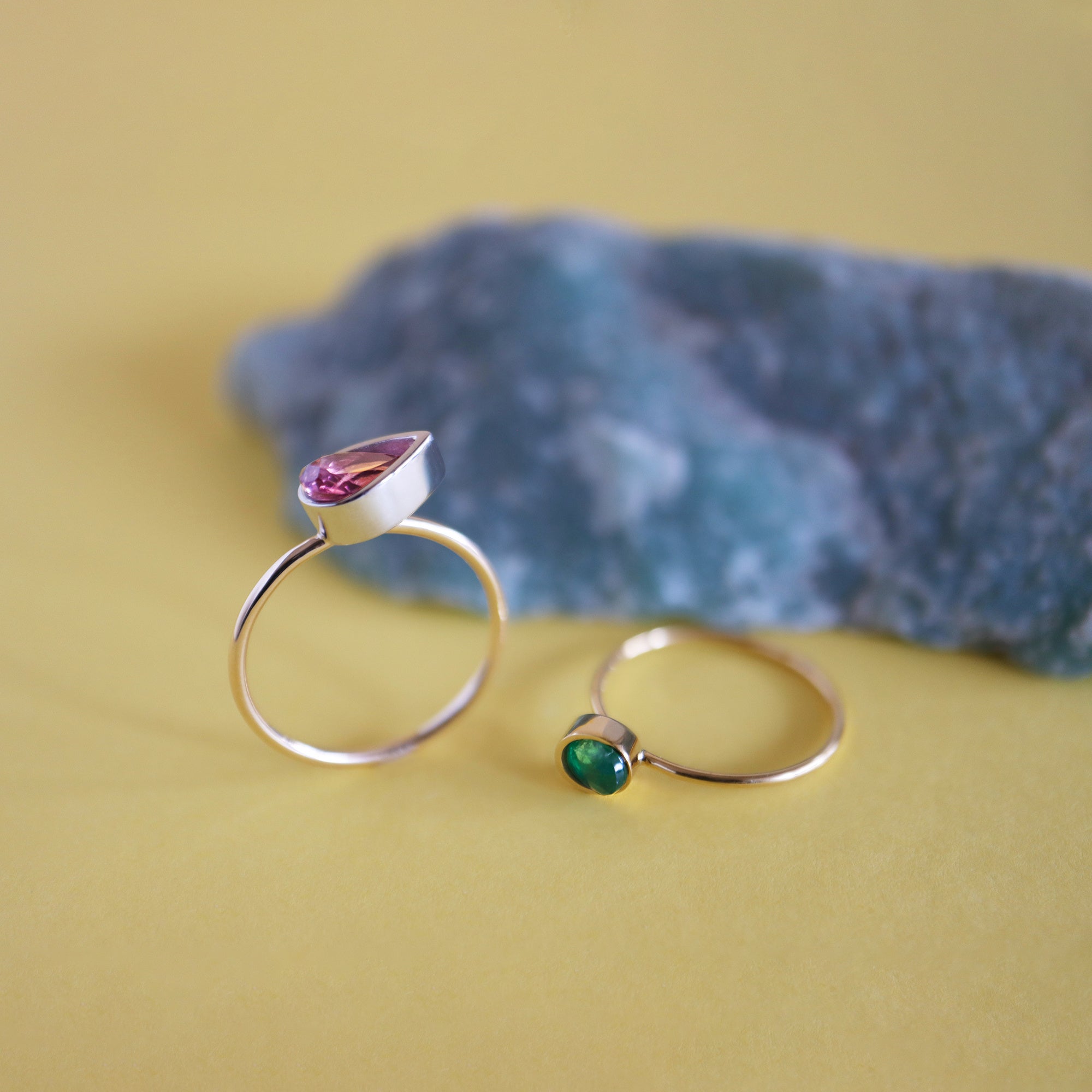 期間中は「春カラー」をテーマに、グリーンベリル、ムーンストーン、ピンクトルマリンなど、爽やかな色合いと透明感のある天然石をご用意。オリジナルの石留め技法で魅せる"Protrude"、"Circle"、"Luna"などの天然石リングを中心に、光を取り込みながら天然石の美しさを最大限に引き立てるジュエリーをご紹介します。