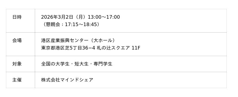 株式会社マインドシェアは、長年学校広報の現場に携わる中で、学生スタッフの存在こそがオープンキャンパスの成否を握る鍵であると考えてきました。今回のサミットを通じて、彼らが単なる運営のサポート役ではなく、学校のブランドを体現し、未来の入学生を導く「最高の表現者」であることを改めて実感いたしました。インプットを即座にアウトプットへと繋げ、自律的に思考する姿は、まさに私たちが理想とする次世代のリーダー像そのものです。今後も、こうした「学びと共創の場」を継続的に提供し、学生スタッフの皆さんがより輝ける環境づくりを全力で支援してまいります。