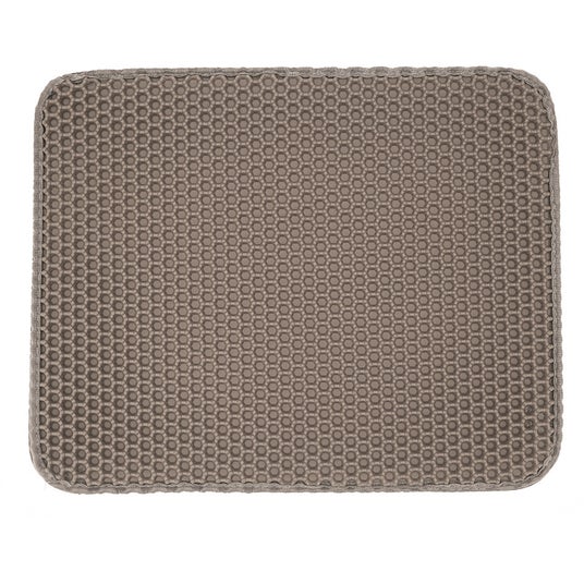 猫トイレの前に敷くことで、肉球に付いた猫砂をしっかりキャッチし、床への飛び散りを防ぐマットです。凹凸のある表面構造が細かな砂まで受け止めるとともに、上層の穴から下層へ砂が落ちる二重構造を採用。下層にたまった砂はまとめて回収できるため、お手入れもスムーズです。柔らかなEVA素材を使用しており、猫の足にもやさしい踏み心地。防水仕様で汚れを洗い流しやすく、乾きも早いため清潔に使い続けることができます。猫砂マットとしてだけでなく、食器周りのマットとしても活用できる多用途なアイテムです。
