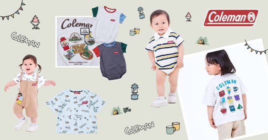今回のコレクションは、キャンプシーンをイメージしたアウトドア感あふれるデザインに、シンプルながらも配色が効いた「Coleman(コールマン)」らしいカラーリングが魅力で、ランタンやキャンプギアをモチーフにした織ネームワッペンなど、細部にまでアウトドアブランドらしい遊び心を詰め込みました。ディテールにこだわりつつ、日常に馴染むナチュラルな風合いに仕上げているため、毎日のコーディネートにも気軽に取り入れられます。袖を通せば、気分は“小さなキャンパー”。親子で一緒にアウトドアのワクワク感を楽しめる、特別なベビーウェアです。