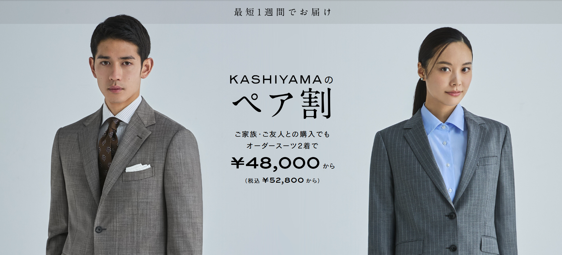 これからスーツを着る機会が増える方や、今まで既製品や、他社オーダーを着用されてきた方に『KASHIYAMA』だから提供できる価値を体験していただけるお得なキャンペーンです。