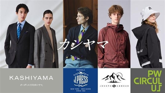 「 カシヤマ」は、ビジネスから休日、趣味の時間まで、あらゆるシーンに寄り添う“ライフスタイル一体型ショップ”です。オンワードグループが持つブランド資産を最大限に活用し、オーダーメイドの『KASHIYAMA』に加え、トラッドブランド『J.PRESS ORIGINALS(ジェイプレス オリジナルス)』やアウトドア向けブランド『JOSEPH ABBOUD MOUNTAIN(ジョセフ アブード マウンテン)』、ゴルフウェアブランド『PW CIRCULUS(ピーダブリュ サーキュラス)』を取り揃えています。